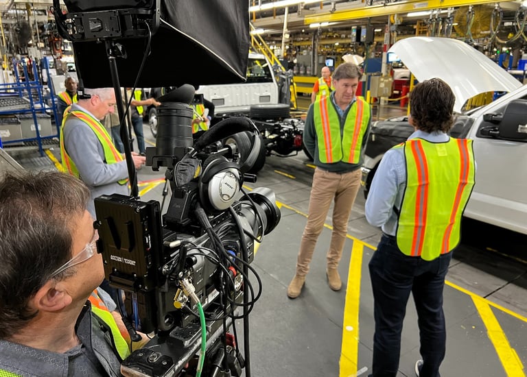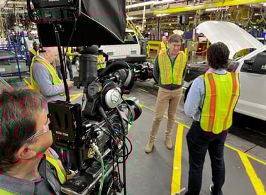This shoot was special for two reasons: It included two of my favorite people - CBS Sunday Morning's correspondent Lee Cowan and cameraman Mike Hernandez. And, it was at the Ford truck plant where my late father-in-law Charles Kaufman worked for 30 years!